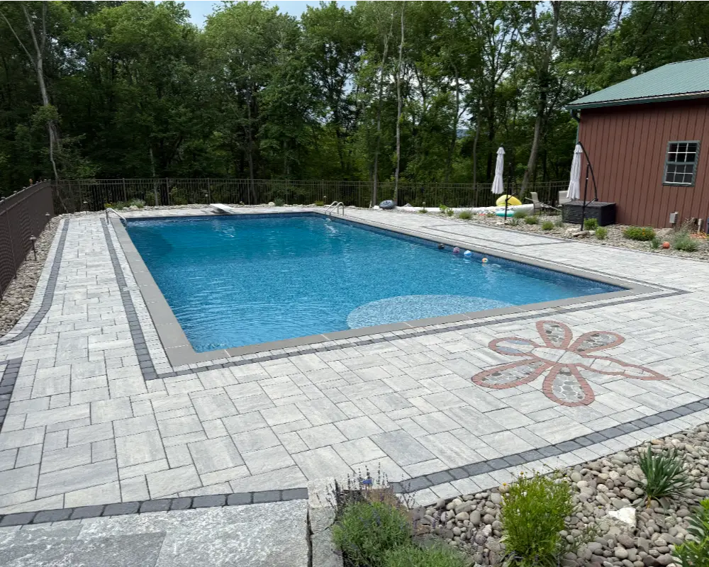 When a homeowner in Knowlton, New Jersey had a new pool installed, they came to JBS Landscaping with a clear vision. They wanted more than a basic patio, they wanted something unique, beautiful, and built to entertain. We worked with them to design and install a one-of-a-kind outdoor space centered around their new pool.