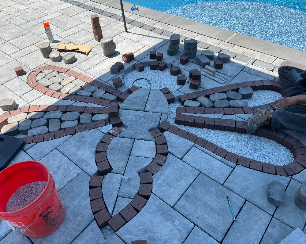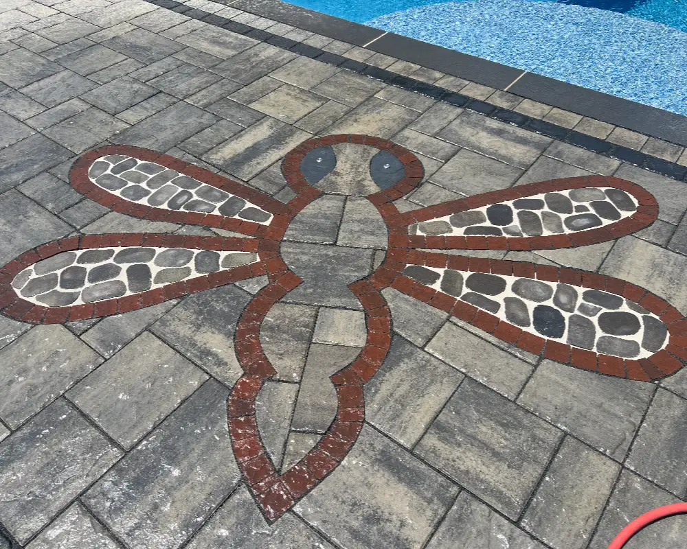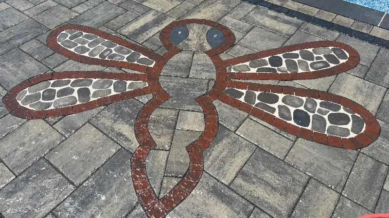 - Designed and installed a custom dragonfly inlay using multiple paver styles and colors, with In-Lite lights for the eyes