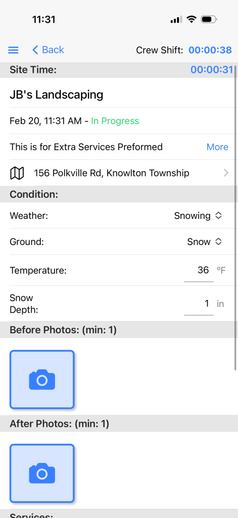 - Documented proof of plowing and de-icing services